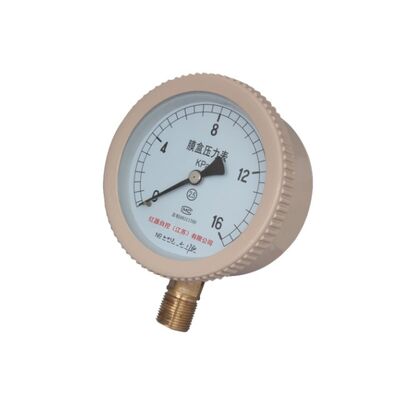 Diaphragm pressure gauges, also known as micro-pressure gauges, come in various types, including stainless steel diaphragm pressure gauges, rectangular diaphragm pressure gauges, and overpressure-protected diaphragm pressure gauges. They are primarily used to measure low pressures of liquids, gases, or vapors that are non-explosive, non-crystallizing, non-solidifying, and corrosive to copper and copper alloys.